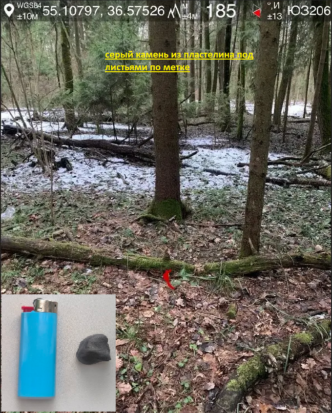 2). В адресе должно быть 2 фото. Общий план, где стрелка указывает примерное местоположение, и ближний план, где аккуратная точка указывает точное местоположение клада.